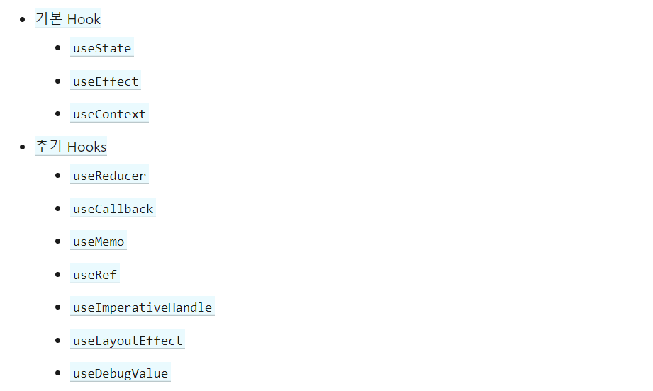 이중 useState,Effect다음으로 많이 사용하는 3개의 hooks를 알아봅시다! -useCallblack- -설명 특정 함수를 새로 만들지 않고 재사용하고 싶을때 사용합니다. 우리가 컴퍼넌트를 호출하면 안에있는 모든 함수,변수들이 재선언 됩니다. 이럴경우에 컴퓨터 memory나 cpu에 많은 부하가 걸릴수 있습니다. (물론 작은 프로젝트는 상관이 크게없음) 위에 말을 해석하면 호출,재선언이 있을때마다 함수를 만들지 않고 한번 만든 다음에 계속 재사용한다고 생각하시면 됩니다! -사용법 import React,{useCallback} from "react"; const App=()=>{ const test=useCallback(()=>{ alert("test"); },[]); /* 만약 참조하는 값이..